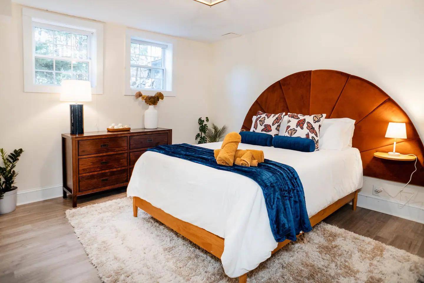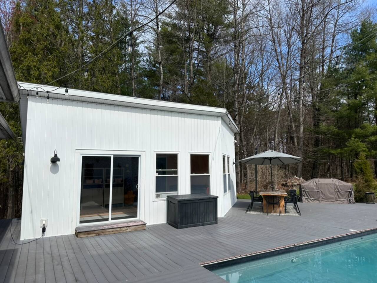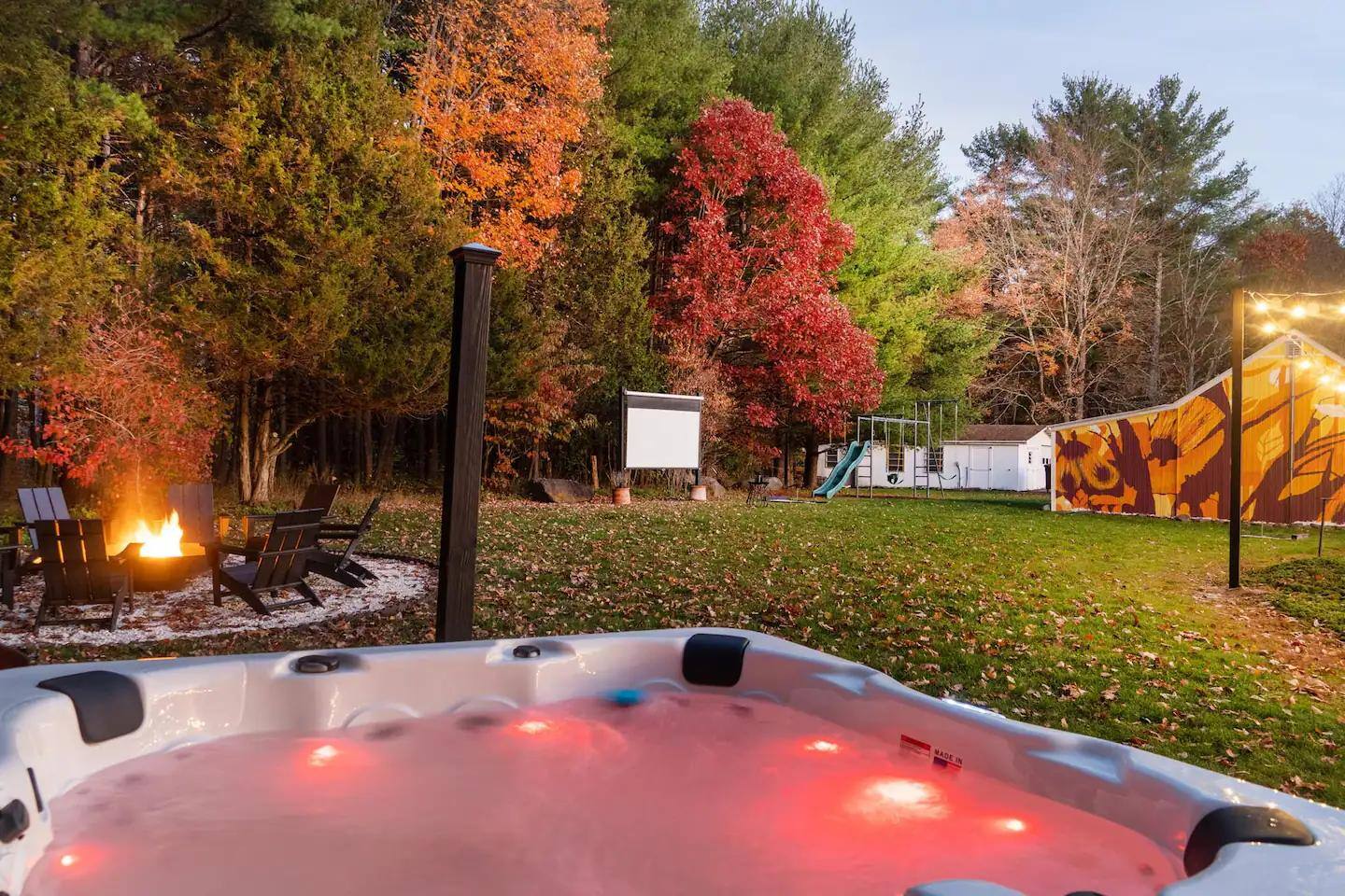 Seasonal Heated Pool: Typically open April through October (weather permitting). We do our best to open early and close late. Please reach out to confirm availability in April or October. __________________________________ 🏡 Welcome to The Bugg Haus Your private Catskills mini-resort, perfect for family gatherings or a peaceful retreat with friends. Nestled on 15 secluded acres, just 2 hours north of NYC with easy access via I-87, The Bugg Haus offers the perfect blend of comfort, nature, and fun. 🛏️ Sleeping Arrangements Main Floor: - Primary Bedroom: King bed + trundle (2 twins). Spacious with en-suite full bath. Downstairs Level: - Queen Bedroom 1: With private en-suite full bath. - Queen Bedroom 2: Adjacent to detached full bath (includes large jacuzzi tub and shower). - Sofa Sleeper: Queen pull-out in family room, next to full bath. Bunk House: - Queen Bedroom 3 - Queen Bedroom 4 - Bunk Room 1: Twin-over-twin bunk bed - Bunk Room 2: Twin-over-twin bunk bed Backyard: 🌲 15 acres of land to explore! Whether snowshoeing in the winter, or going on a nice crisp walk in the fall, you're welcome to take advantage of the nature around you! 🏊 The in ground pool salt water pool is open May - September - weather permitting. If you are interested in booking dates in April or October, please reach out to confirm pool availability. The pool features a wrap-around pool deck with outdoor patio furniture curated to fully enjoy. We have our pool professionally cleaned weekly. During your stay you might need to use the skimmer to remove any debris that land in the pool. 🔥 Wood-burning fire pit and 8 beautiful black Adirondack chairs ready for you to enjoy some s'mores with a view of the mountains (additional camp chairs available). ♨️ Outdoor hot tub perfect for soaking any month of the year. 🍖 Propane grill with grilling accessories. 🎥 Outdoor movie projector screen with wifi connected outdoor projector Kitchen: Gourmet kitchen. Fully equipped and ready for you to cook up a storm for your hungry guests. Includes spices, salt/pepper, cookware, utensils, etc. We provide a starter supply of paper towels, toilet paper and trash bags. Technology: Smart TV’s (all TV’s include Rokus set in “guest mode” so you can log into your streaming services and it will automatically. Fireplaces: The home has two fireplaces, however only one fireplace is currently working. The black brick fireplace in the basement is working and the white one on the main level is currently out of commission. Water System: Our property's water supply comes from a well and therefore it is important for our guests to do their best to be conscious of their water usage, especially if your party includes 10+ guests and you are renting during summer season. If you have questions, please feel free to message us! Pets: We do allow trained and well behaved dogs. Please inquire with us if you plan to bring a dog and we will discuss our rules and pet fee. Area: The region is still very much "the untamed mountains", so wildlife and insects are pervasive. We take every precaution and employ a monthly pest prevention program with a licensed exterminator. Despite that, you may still encounter small insects or critters in or around the home. This includes bears, stink bugs, ground hogs, turkeys, deer, and thousands of other species.