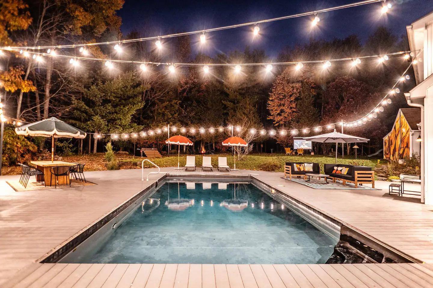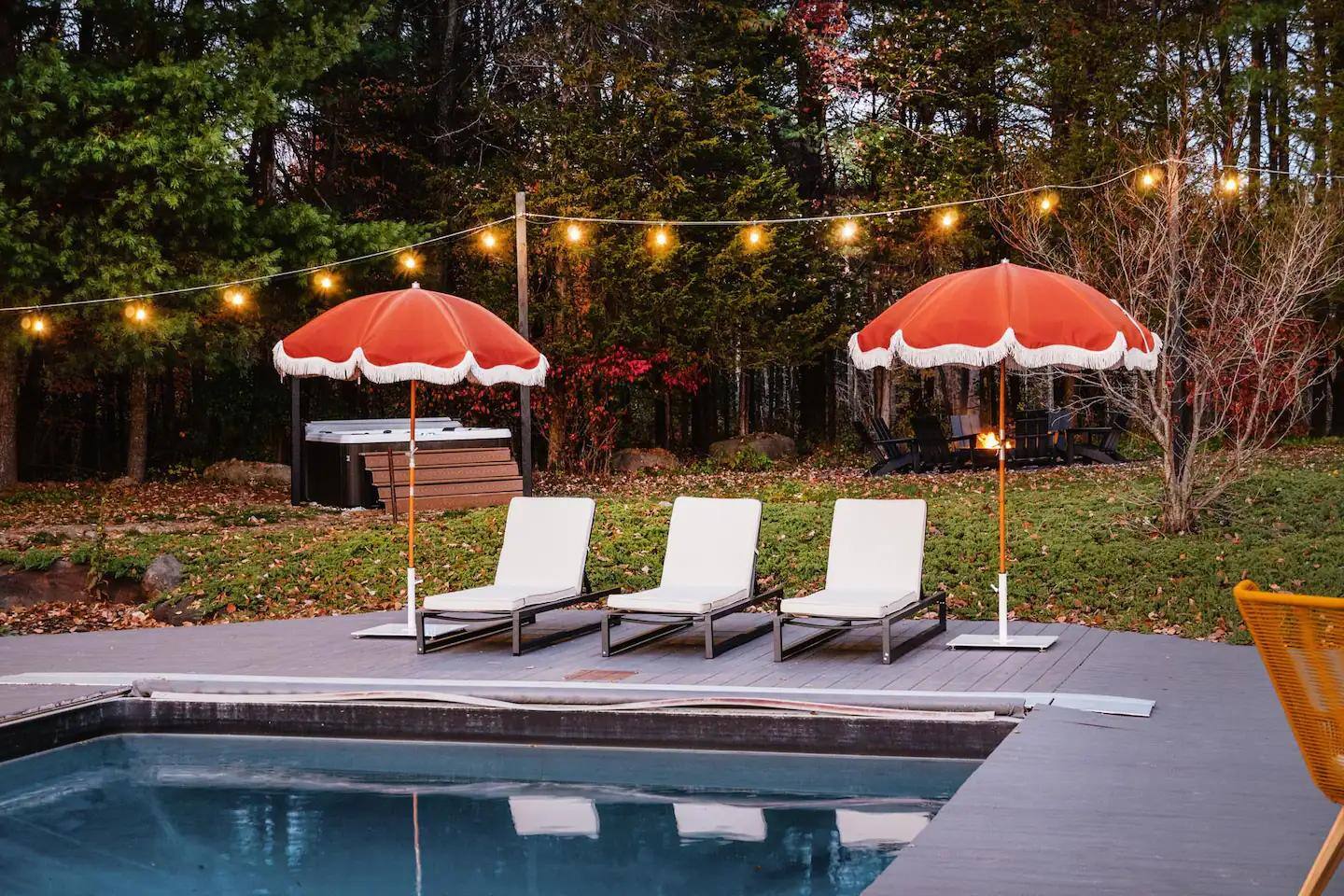 ***Please check pool season dates*** ★ Heated Saltwater Pool* April - October (no fee for heating!) ★ Hot Tub ★ Mountain Views ★ On 15-acres ★ Free Wifi ★ Gas Fireplace ★ Fire Pit ★ Propane Grill ★ Coffee Bar ★ Gourmet Kitchen 16 miles from Windham, 25 miles from Hunter, 31 miles from Albany. Enjoy the perfect balance of proximity to winter skiing and the serenity of a peaceful getaway. *See full property details for when the pool is open during the year. Typically open April - October.